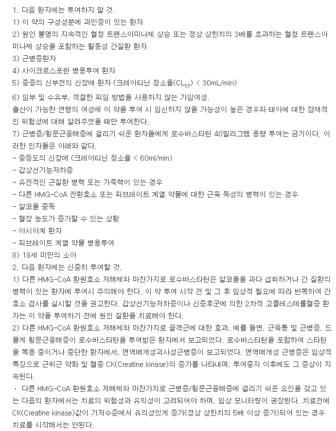 이 약을 투여전 및 투여중인 환자는 표준 콜레스테롤 저하식을 하여야 하고 이를 치료기간동안 지속하여야 한다.